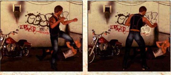 针对生殖器连续击打产生的疼痛可以迫我身体继续左转左腿顺势屈膝抬起左