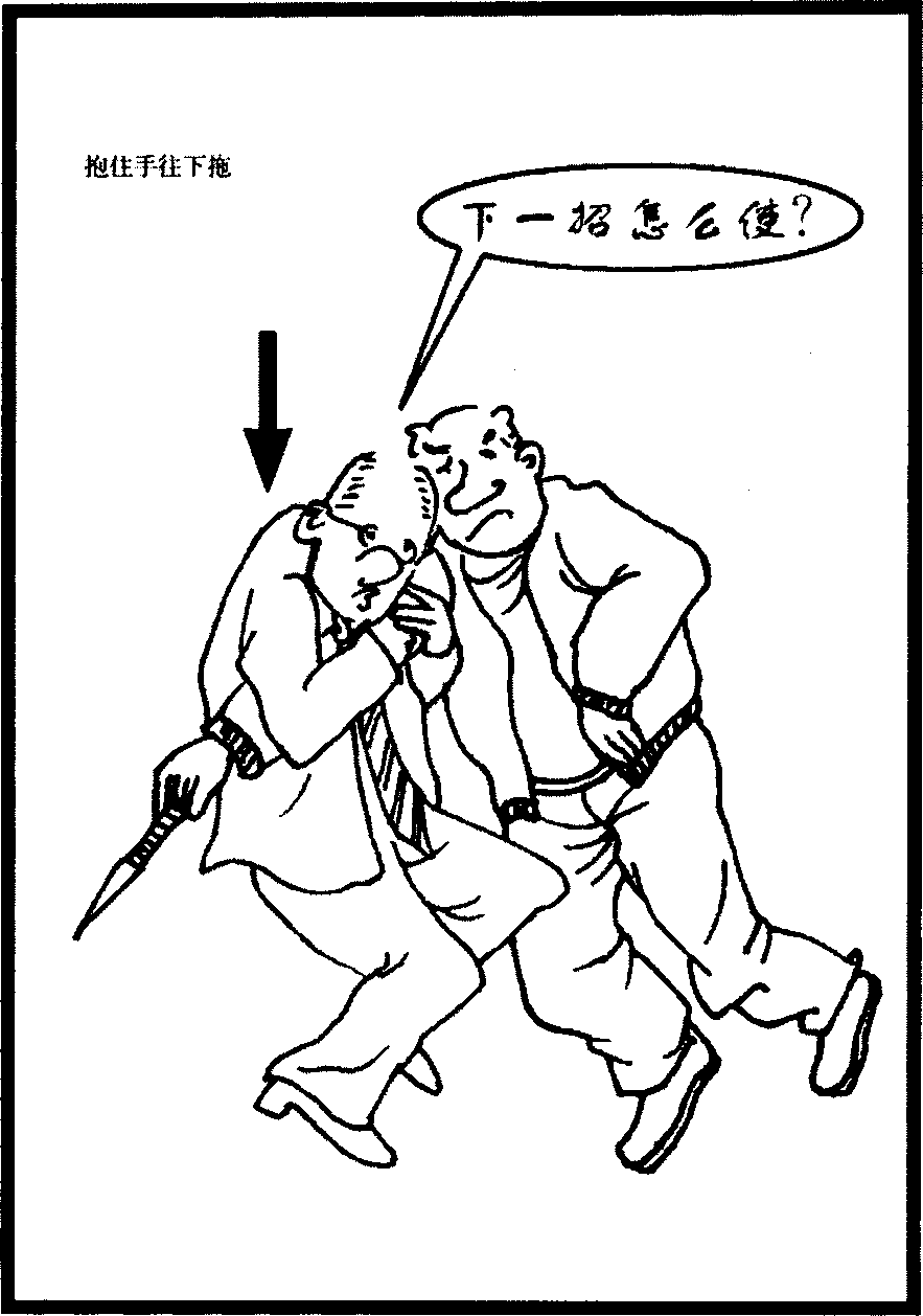 在无赖之间的群架中在使用刀刃时据说以刺伤大腿的例子占最大多数。因为刺伤大腿对方就不能再动弹而自己能从容逃跑。职业打手之间除非结有深仇否则不会刺腹、胸等致命部位。但如果是恐惧分子情形就不同了他会不顾后果地刺向他人的腹部、胸部等重要部位。因此你遭遇这样的情形应以侧身的架式准备避开暴徒如若再逼近你就奋力扑向他持刀的臂膀并以全身重量抱住他的手并往下拖这样做或许多少会受点伤但生命却可望保住。
