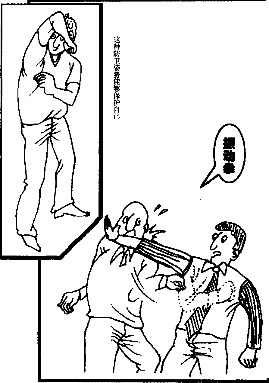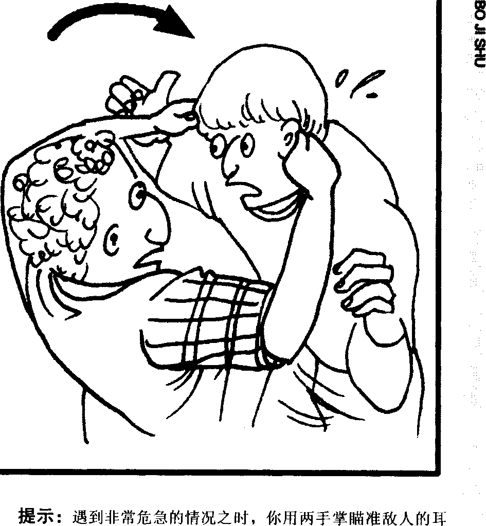 然而你为了保身是没有所谓被禁止的招式的。遇到非常危急的情况之时你用两手掌瞄准敌人的耳朵边以双边钩拳的要领重重掴下去这了自卫这种伤害应该是被允许的。另外同样在拳击方面被禁止的还有振动拳。这是用手背向外振挥的拳击法威力很大所以拳台上被禁止。你只要挡开对方的出拳要领给暴徒这样的一击你就能得到充分的逃亡时间。