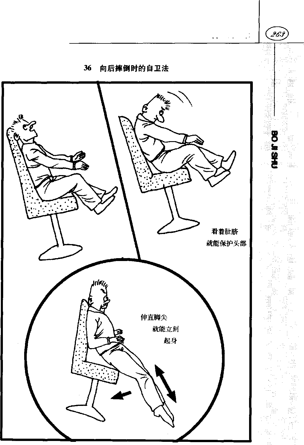 提示在摔倒之时要看着自己的肚脐只要牢记若两脚离地腾空就必须看肚脐这个原则便可保卫自己身体到某个程度。