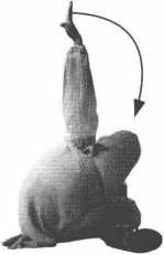 要点:翻腰时不能立身,上体需保持水平。拧腰发力,抡臂立 圆与地面垂直。坐盘时臀部坐于地面,两腿紧扣盘叠,不能松散。 躯干压低使左肩贴近地面。