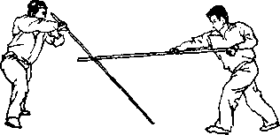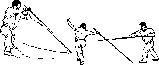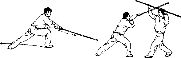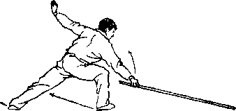 【用法】白猿拖刀为闪挪下护之棍法.敌如持械向我下 部袭来,我急闪下挂,而后进身反击(图6—168 )。