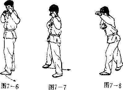 ②前脚擦地向左斜方闪挪约一尺租离。(图7—7)