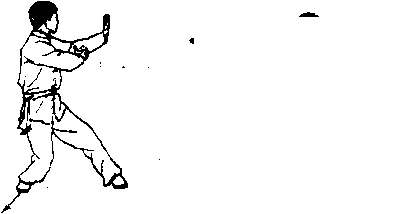 ①前串步:由中守势(参见图7—1 ),右脚经左脚向前 迈步,随即左脚再向前上步。(图7—16)