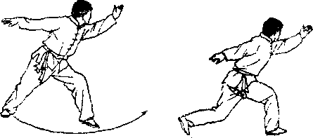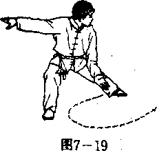③动作不停,右脚继续向左前方上步,(图7—21)