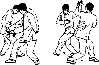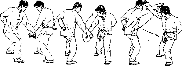 ⑦上靠臂:右臂内翻,由左绕弧向上反击敌面,二臂在 头前靠击。(图2—101 )