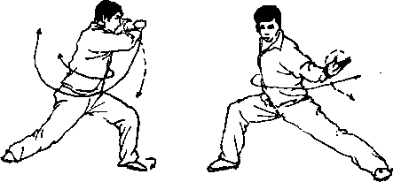 【用法】半击拳和迎心拳 为连贯性打法。我以翻打跌跣 敌,敌如抓擒我腕,我可以右