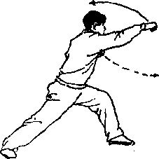 (1)接上势,右臂内旋回收,左手向前压于右腕上(图 1-29) o