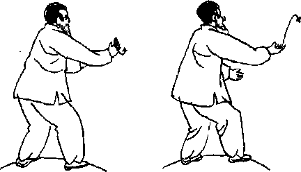 右出步成左实右虚步右手穿掌眼视右手(图1—6一双臂外旋成仰掌(图1—6一8)。换掌成右式(图1—6—9九