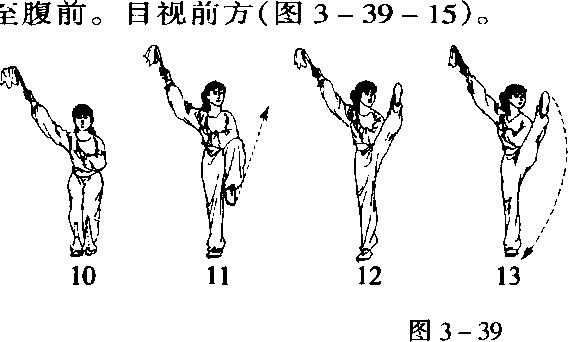 (1)左腿体前下落,脚跟着地(图3 - 39 - 14)。