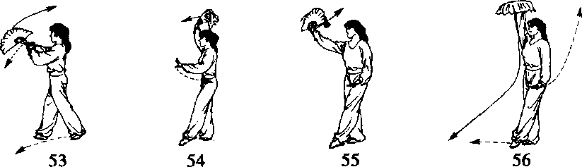 (4)扇面略向前推,左手拉至左胯前(图3 - 48 - 55)。