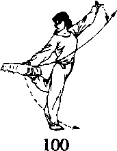(4)右小腿向上抬起,脚背向上,高于腰。目视前方(图3-56-%)。