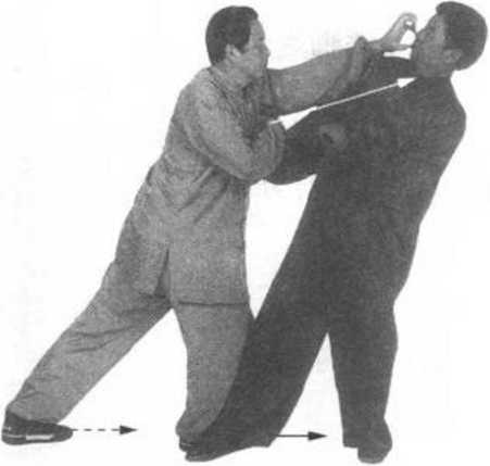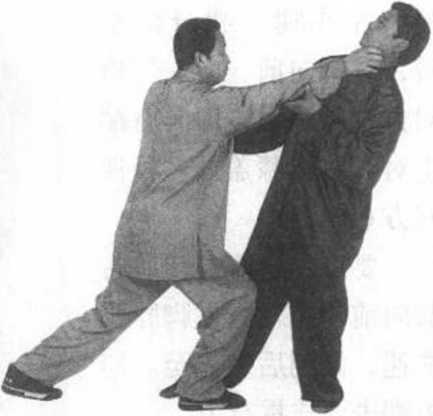 要点:右拳下砸对方 右拳要猛,左爪抓面要 疾,双脚上步要快,右爪 抓腮要狠。四个动作要连 贯一体,不可停断。