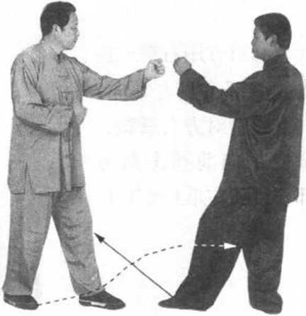①敌我双方均右前式 站立。互视对方(图69)。