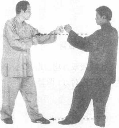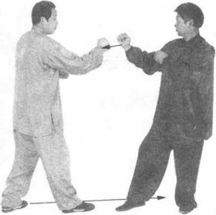 图26①敌我双方均左前式 站立。目视对方(图27)。