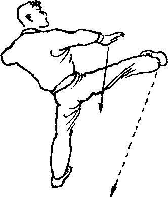 ②左腿站直,右脚向右蹬踹,力在脚跟。右掌横掌随右脚 向右撑掌,左掌屈肘平放左胸前,掌心均朝下。目视右脚(图 53)。