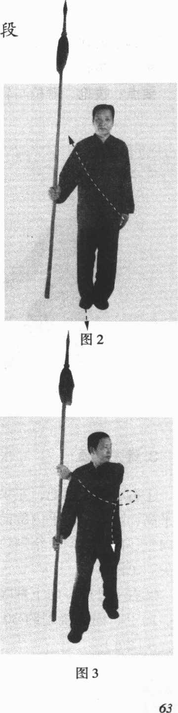 要点:拦拿枪动作要用身体整体之力,并与前扎枪动作要 连贯紧凑,不可间断。