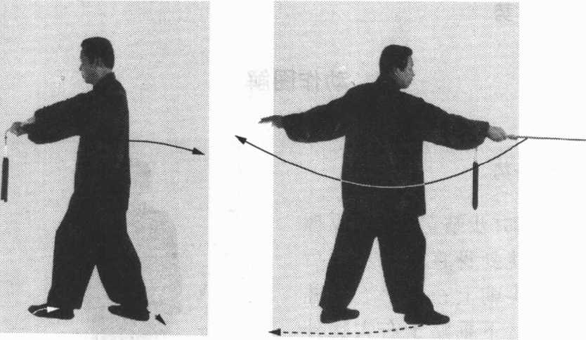用途:用剑拦挂从四周攻我之对手的器械,并用剑上挑身 前之对手的身体。