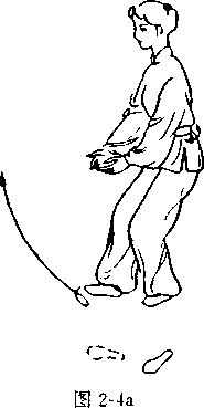 ②右脚微提离地面,随左转 腰带向左脚左侧,然后随右转腰 向前蹬脚,目视前方(图2-4b)o②右脚微提离地面,随左转 腰带向左脚左侧,然后随右转腰 向前蹬脚,目视前方(图2-4b)o
