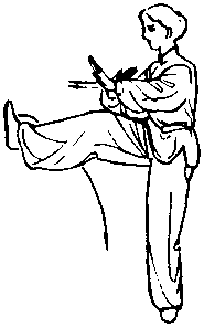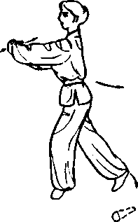 ①重心移向左前,双手微向左 前推出,随左转腰右脚踩莲上步 (图 2-6a)o
