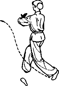 ②随左转腰,左脚向左45° 方向落步成左弓步;同时右手向 左画弧至体左侧,再微向右收搭 于左腕上方成十字手,眼随右手 移动(图2-5b)o②随左转腰,左脚向左45° 方向落步成左弓步;同时右手向 左画弧至体左侧,再微向右收搭 于左腕上方成十字手,眼随右手 移动(图2-5b)o要点:右手向左画弧及向右微收动 作皆由转腰带出。