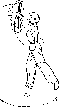 ① 接上武,右手握扇,随身体 起,外手心向上(图5-18a)o