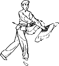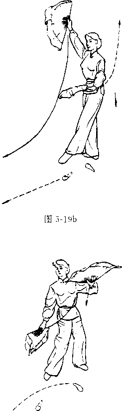 ?接上式,两手握扇随 身体起,左脚外劈,右脚虚上 步,手心相对(图5-21a)0
