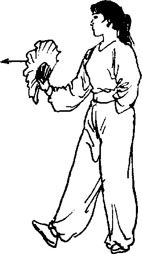 立扇,扇面朝前,手臂由屈到伸推出(图ll)o