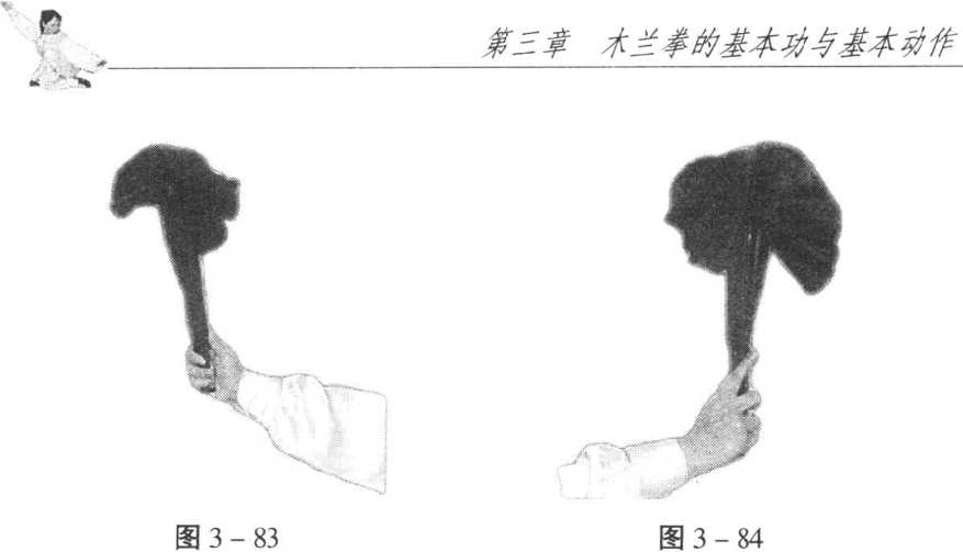 、木兰扇的基本握法扇的各部位名称如(图3-82)所示。(_)合扇的握法合扇的握法:拇指、中指、无名指、小指握扇,食指伸直贴 于扇面(图3-83、3-84)。(二)幵扇握法1. 大拇指扣压在上端和大扇骨上,食指、中指、无名指、 小指压于另一面小扇骨上(图3 _85、3-86)。2. 拇指扣压在扇端上,食指、中指、无名指、小指压于另 一*面(图 3 - 87)。图 3-85图 3-85图 3-86图 3-86图 3-85图 3-85图 3-86图 3-86