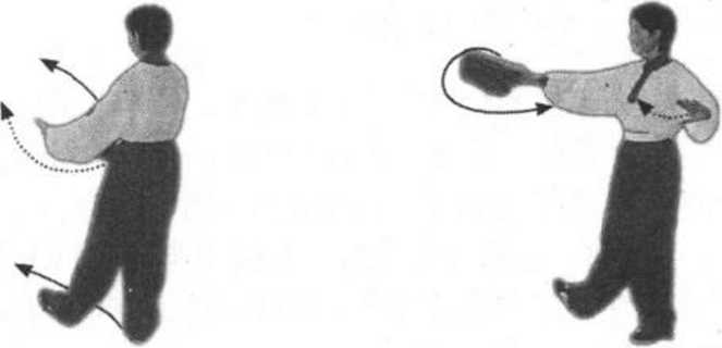 [要点]上步、扣步、插步的步法需轻灵平稳。上下肢动作 需协调配合,连贯完整。