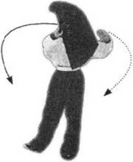 4. 右脚尖内扣;右脚支撑;左脚前掌向右后插步,重心后 移。同时两手向外撑开至肩前,臂微屈。目视前方(图5- 141)0