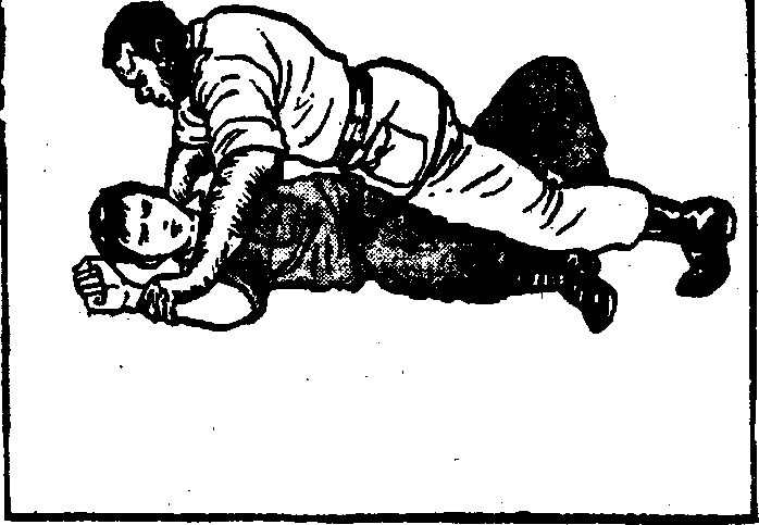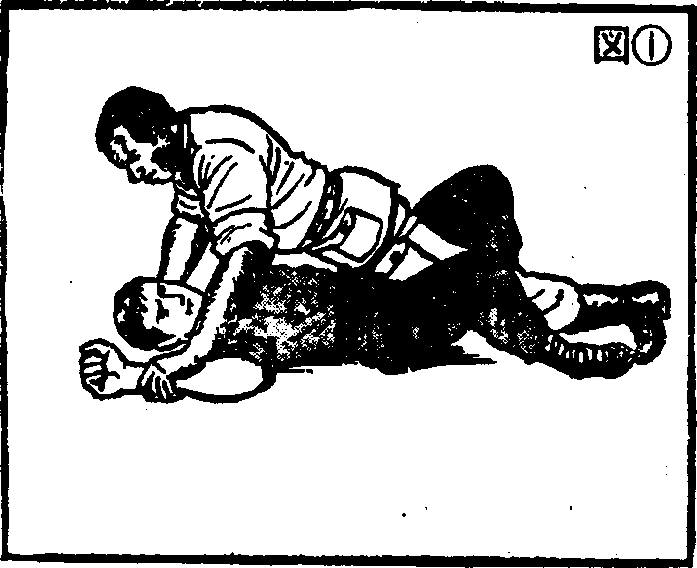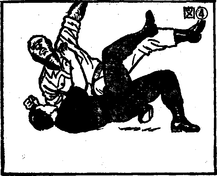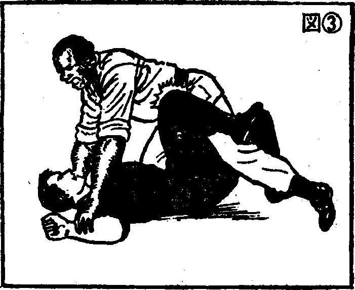 (图-3)此攻击方法只要有四年级小学生的体力便能奏效,趁对手寤作一团时,迅速将其掀翻然后上击用脚跟猛跺敌人头部迅速离开现场。