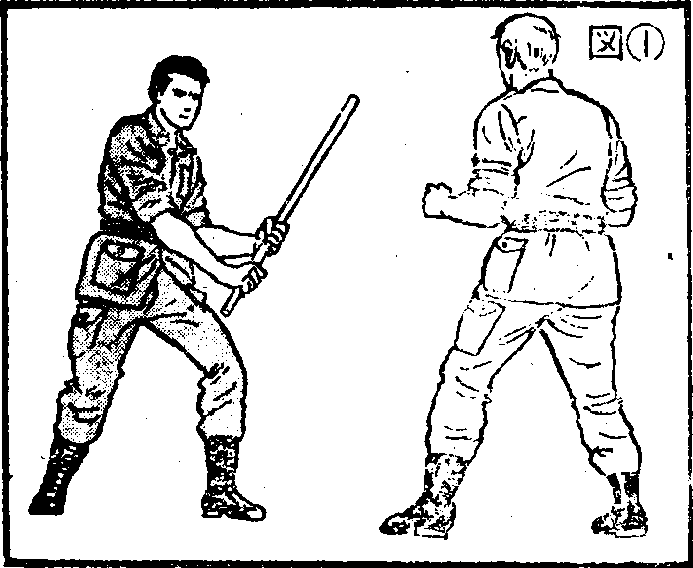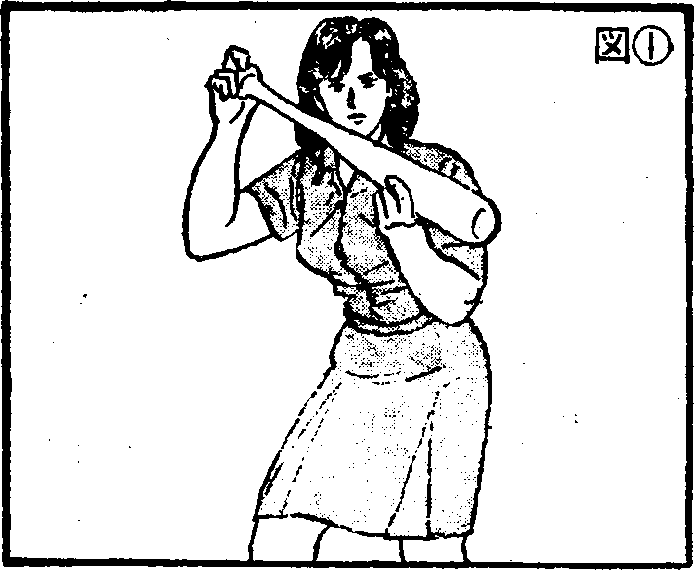 图217体力弱的女子或小孩如果手持球棒粗的棍棒就采取瞄准对方胸部的姿势。