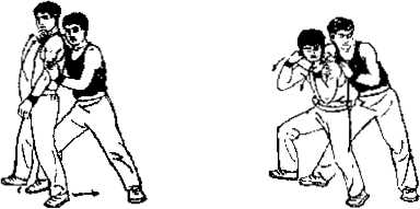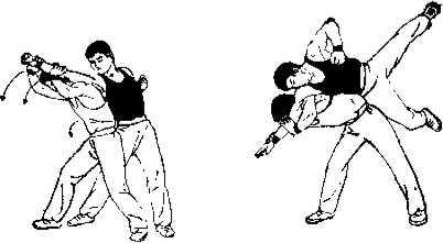 ④ 甲方平有站立双垂手式,墓牌身。乙方从甲身后上右脚用右臂从右外方向前兜挟住甲方的脖子而用空掌托住甲方的左肘。〈图831)