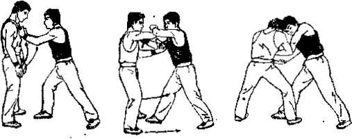 ⑥ 甲方平行空诂立双垂手式墓牌身乙方右牌在前左脚在后双手抓住甲方的胸前衣服。(图911)