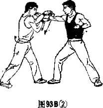 图93用右擒掌从乙方图93用右擒掌从乙方左手内侧挡而擒住乙方的左腕部左掌外旋翻腕掌心朝上由下随右掌向右上方从下面抓住乙方的左前臂下段。