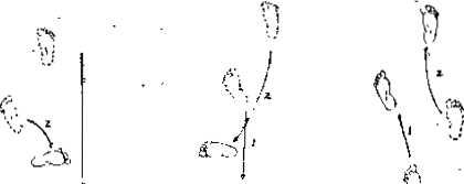 右脚(前脚)伸膝后蹬并提腿向后跳%身怵随即后倾1左脚(、后脚)跟着也后蹬跳起右脚先落地在后左脚后落地在前双脚下蹲成左屈步。(图221)