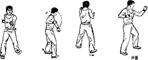 接上式右脚向左侧横跨半步落于左足前方足内扣身左转向西(后门)成墓牌身随转身左脚向左侧横跨半步落于原右足跟之后方足尖朝西微偏内。同肘左拳内旋垂臂于胯前左前臂外旋半屈肘经右撕身前向左肩前方弧形运臂掀起拳高平颔拳眼向外拳面朝左曲上片°眼视左拳。在后转的过程中深吸气在掀桥时短促呼纭。(图1512)二+舱图14 二+季图1就) 二十拳图1功