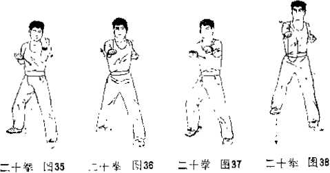 接上式左脚以足跟为轴外摆足尖向左前方右脚越过左脚向而跨出一步足尖向前微偏内双膝略屈成右不