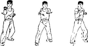动作与第四动相同(图41)二十拳凰39 二+率图40二十拳图41一溜马步抱牌掌接上式左脚向后退一步屈膝半蹲重心移于左脚之上右脚轻提跟下以足掌轻点着地足尖朝前成右溜马步右拳化掌外旋背伸榛扣略屈肘收于右侧大腿中部前方攀心向前拿尖朝右前方右肘内夹与身离一拳之宽同时左拳化掌内旋成竖掌半伸肘向前撬出止于左侧身前位高平肩掌心向前掌尖朝在上方身躯随慝掌右转成慕牌身了眼挽前方咛气(42)