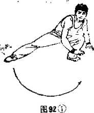(135°—270°)。双手按地身随脚扫而左转(图922)