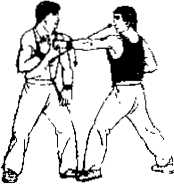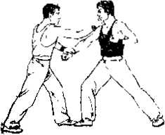 ② 甲方运掌下压并抓开乙方前,臂(部位越靠上段越佳)。在投击中要想一出手就抓住对方的手臂是较困难的但只要压抓升对方的来招为仰拳的撞出提供空挡即可。故仰握拳要快速出击达到-抓即出爪到拳到的要
