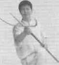 37, 右脚向右落步成左弓步叉锋由下向左上方斜击沉肩垂肘。(图7-66)
