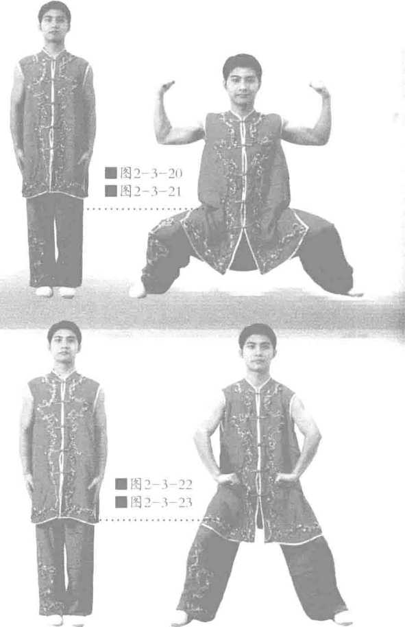 图2-4图2—图2-4图2—不放松呼气不慢不快并随着呼出的气用力把全身肌肉都使上劲马步夹紧足趾抓地双掌绷紧提肛收腹即全部肌肉紧缩意想浑身坚硬如铁全身处于最紧张状态似乎无坚可摧。如此七七四十九次呼吸即可见图2—3-18、2-3-19