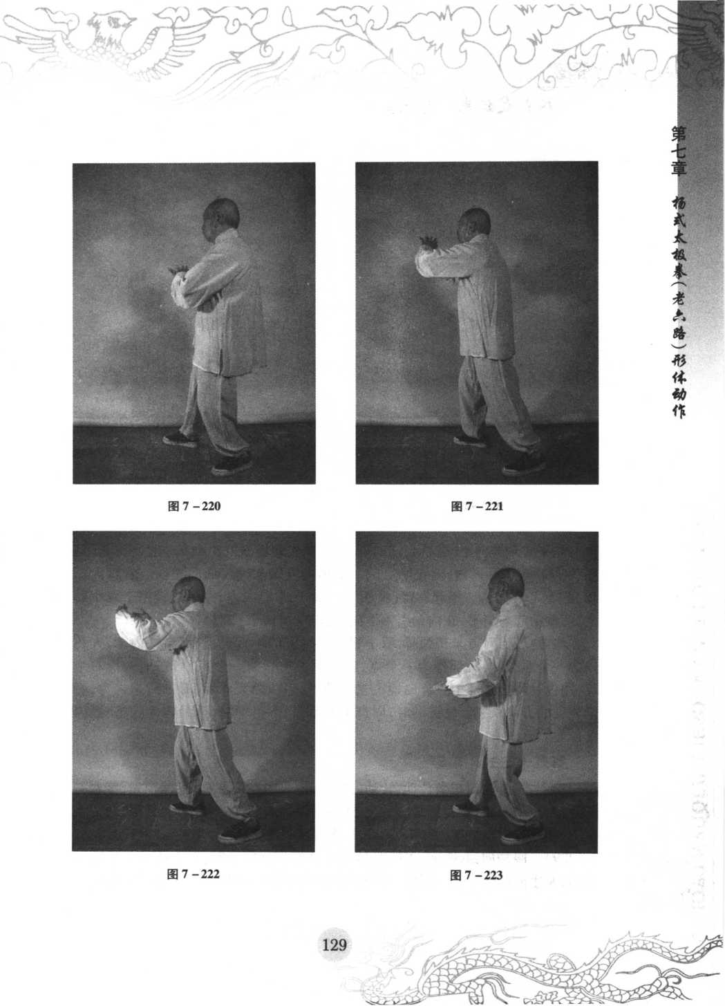 右臂向右下舒伸直为止,重心在左腿(见 图 7-219)。