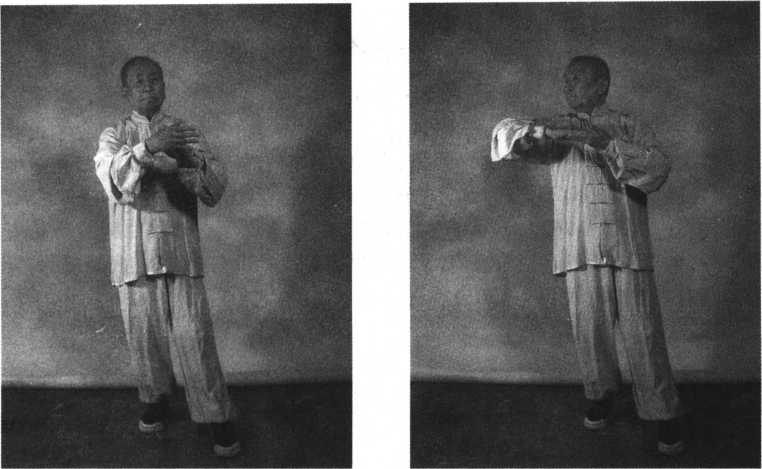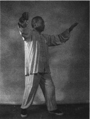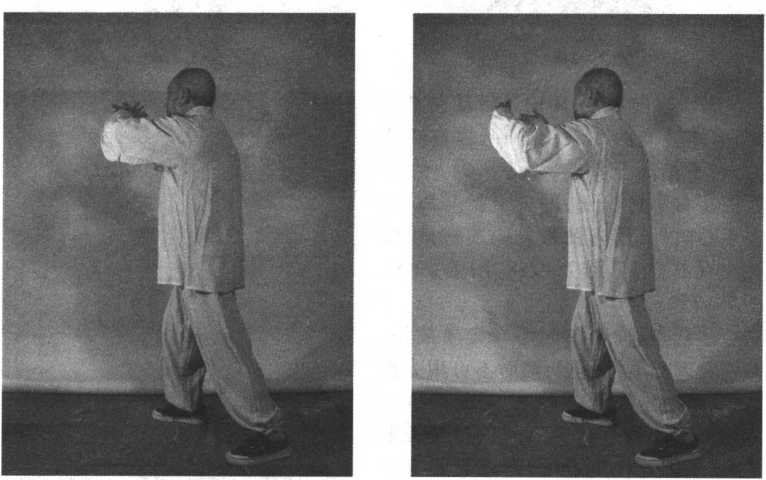 缓缓转到左手向东,右手在左肩前(见图