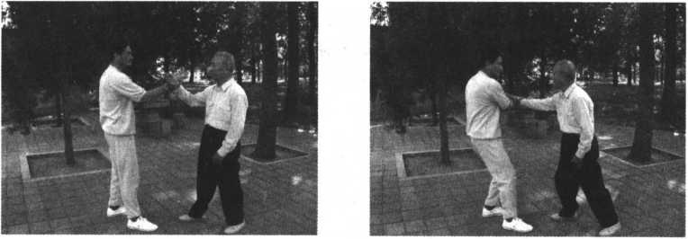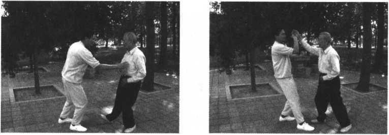 我们的口诀是:“沾粘连随劲更神,内外相合似车轮,只要对方被沾住,轻轻