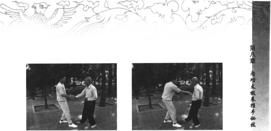 3?练双人单手兑圆(见图8 -3、图8 -4、图8 -5、图8 -6)