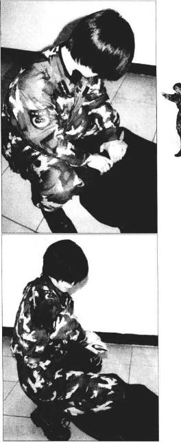 近图演示抓敌左小臂动作(图4—258)。近图演示抓敌左小臂动作(图4—258)。4-254-25要提拉垂直左手抓敌左小臂右手折敌右手腕将匕首夺下右膝跪压敌肋将敌制服(图4—259)。动作要点拍挡推击面部要同时上步换手顶腹准、快、圈颈折臂控制紧。