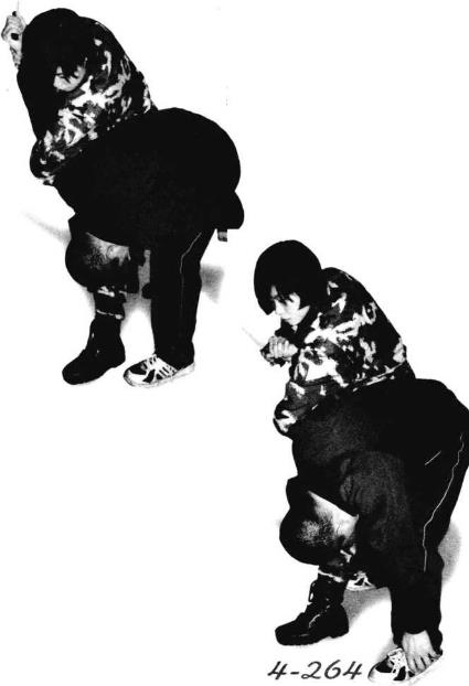 ,上体向下压敌右大臂双手协力向上提敌右小臂(图4—263)。4-2654-2654-2664-2664-2654-2654-2664-2665我右手折敌右手腕左手将匕首夺下置于敌右小臂将敌制服(图4-265),近图演示控制手法(图4一266)。动作要点左上横移步动作要快格挡上接臂要准插步压臂要协调托臂折腕控制紧。